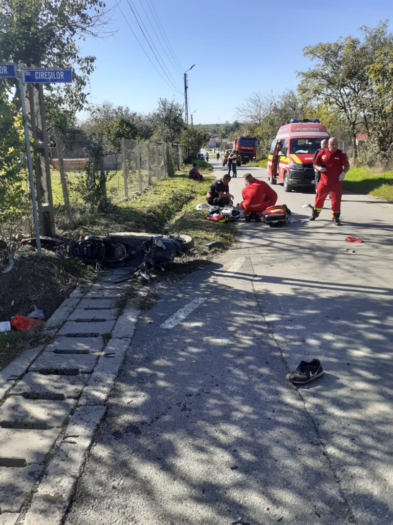 Din primele informații, un scuter a intrat într-un autoturism. La locul accidentului au fost mobilizate: un echipaj SMURD B2, o autospecială pentru stingerea incendiilor cu apă și spumă de la Garda 2 Chirnogeni și elicopterul SMURD.