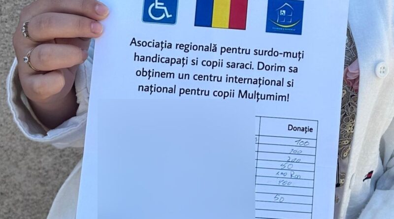 Marți, în jurul orei 13:30, un echipaj de jandarmi a depistat în parcarea unui hypermarket din Constanța două tinere, de 19 și 20 de ani, care colectau bani sub pretextul sprijinirii unei organizații inexistente: „Asociația Regională pentru Surdo-Muți, Persoane cu Handicap și Copii Săraci”. Pentru a părea credibile, cele două foloseau mape și formulare tipărite, pe care le prezentau trecătorilor.