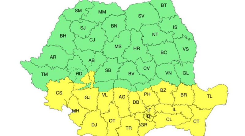 Atenționare ANM: COD GALBEN de vânt în mai multe zone din țară
