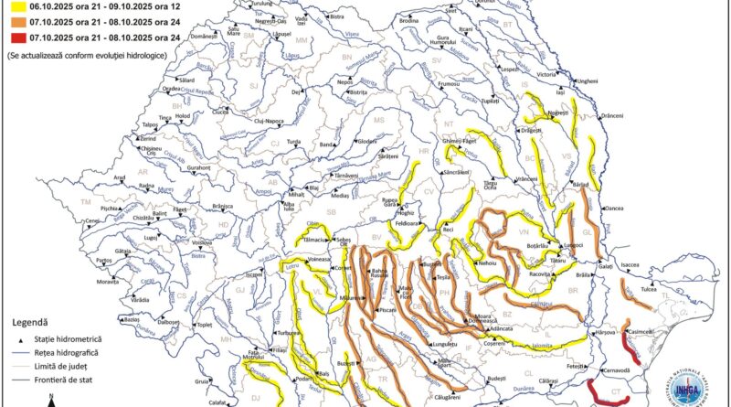 Codul galben este valabil în intervalul 6 octombrie, ora 21:00 – 7 octombrie, ora 21:00, iar codul roșu va intra în vigoare de marți, 7 octombrie, ora 21:00, și va fi valabil până pe 8 octombrie, ora 24:00.