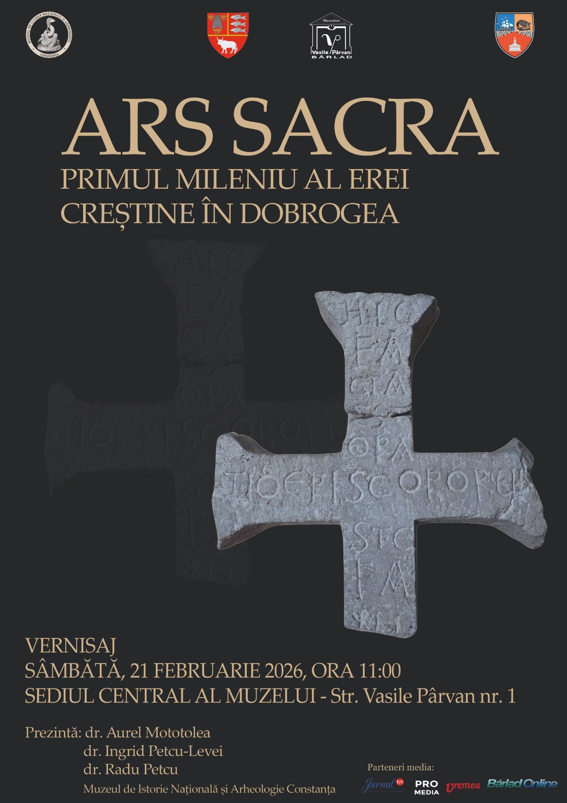 Muzeul de Istorie Națională și Arheologie Constanța, sub egida Consiliului Județean Constanța, în parteneriat cu Muzeul „Vasile Pârvan” Bârlad, aflat sub egida Consiliului Județean Vaslui, invită publicul la vernisajul expoziției „ARS SACRA. Primul mileniu al erei creștine în Dobrogea”.