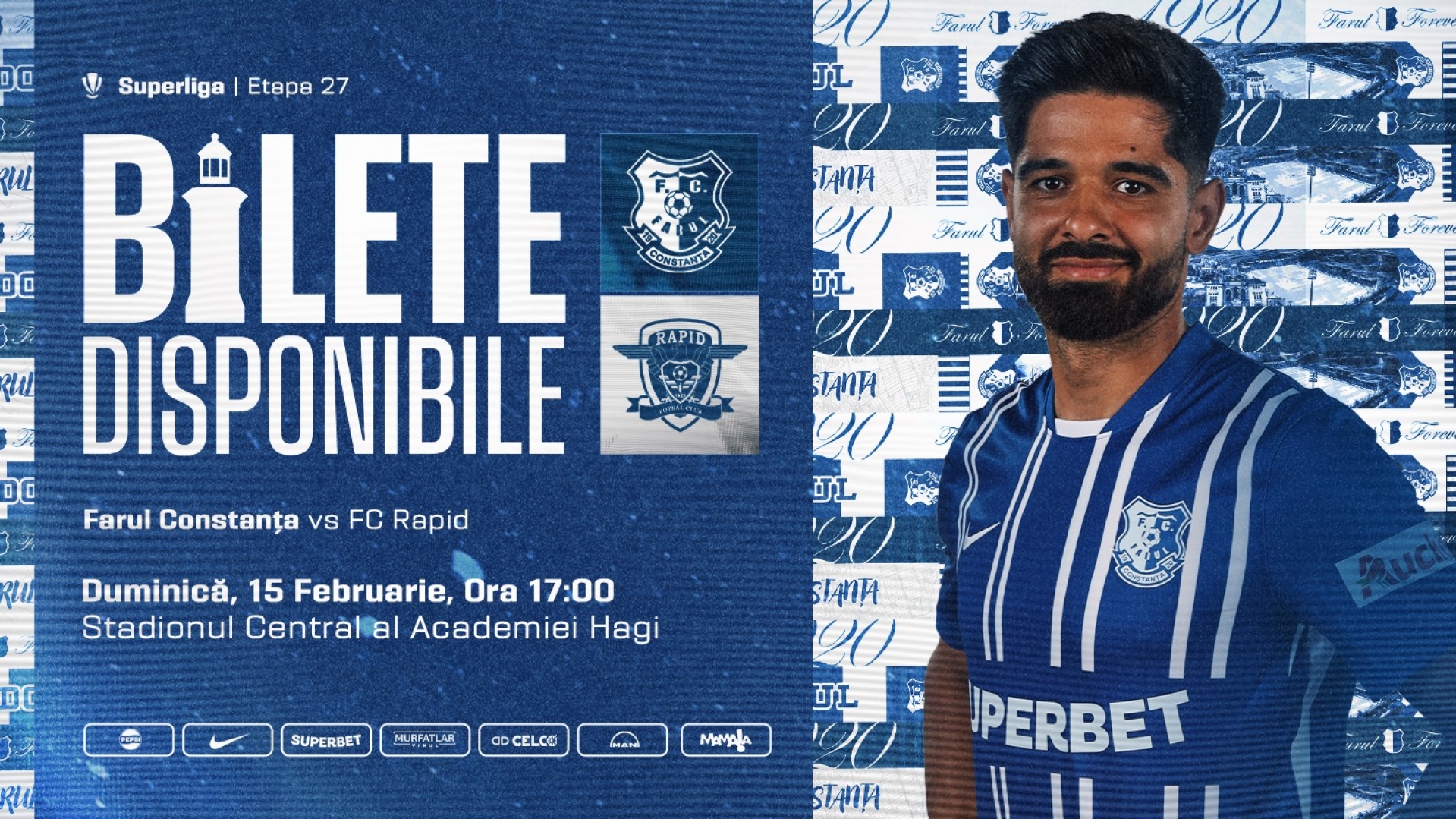 Duminică, 15 februarie, de la ora 17:00, Farul Constanța va întâlni formația FC Rapid București, în etapa a 27-a din Superliga României.