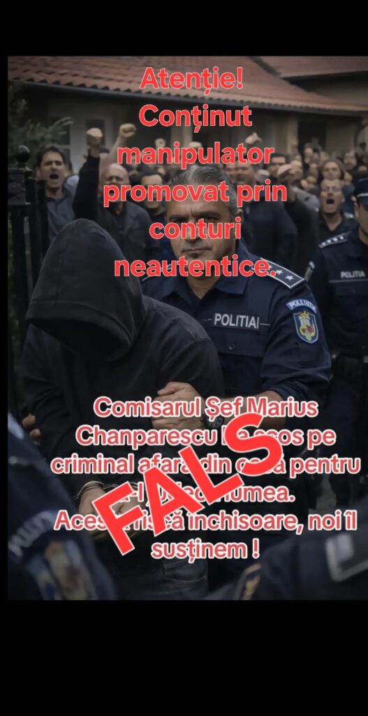 Potrivit MAI, în ultimele ore au fost identificate postări distribuite intens pe rețelele de socializare, care conțin fotografii generate cu ajutorul inteligenței artificiale și informații complet neadevărate. Acestea sunt promovate de rețele de conturi cu comportament neautentic, inclusiv boți și troli, având potențialul de a crea tensiuni în comunitate.