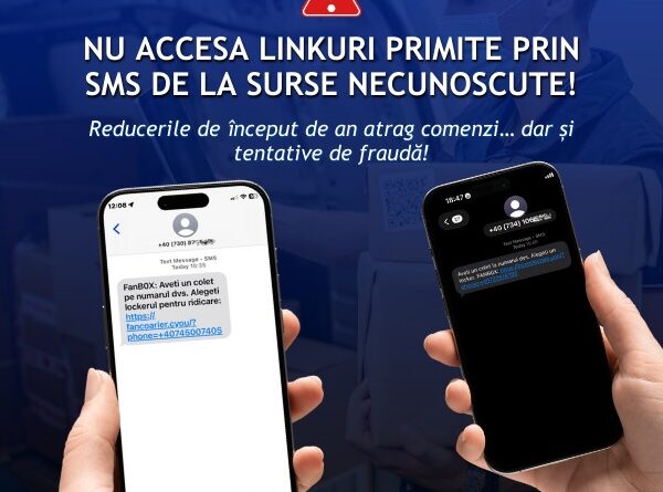 Una dintre metodele frecvent întâlnite vizează mesaje false atribuite unor companii de curierat. Utilizatorii sunt anunțați că ar avea un colet în așteptare și sunt îndemnați să aleagă un locker sau să confirme livrarea: „Aveți un colet la numărul dvs. Alegeți un locker FANBOX”. În realitate, mesajele conțin linkuri către site-uri frauduloase, care imită platforme oficiale și urmăresc obținerea de date personale sau bancare.