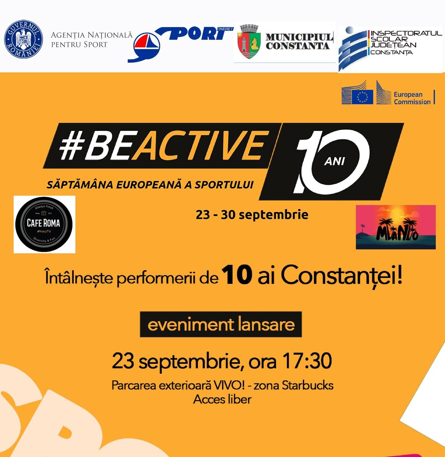 Evenimentul de deschidere are loc marți, 23 septembrie 2025, de la ora 17:30, în parcarea exterioară VIVO! Constanța (zona Starbucks). Atmosfera va fi una plină de energie și inspirație, exact așa cum ne îndeamnă și mesajul campaniei europene: BeActive!