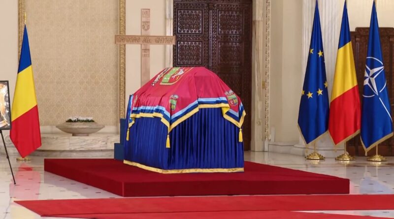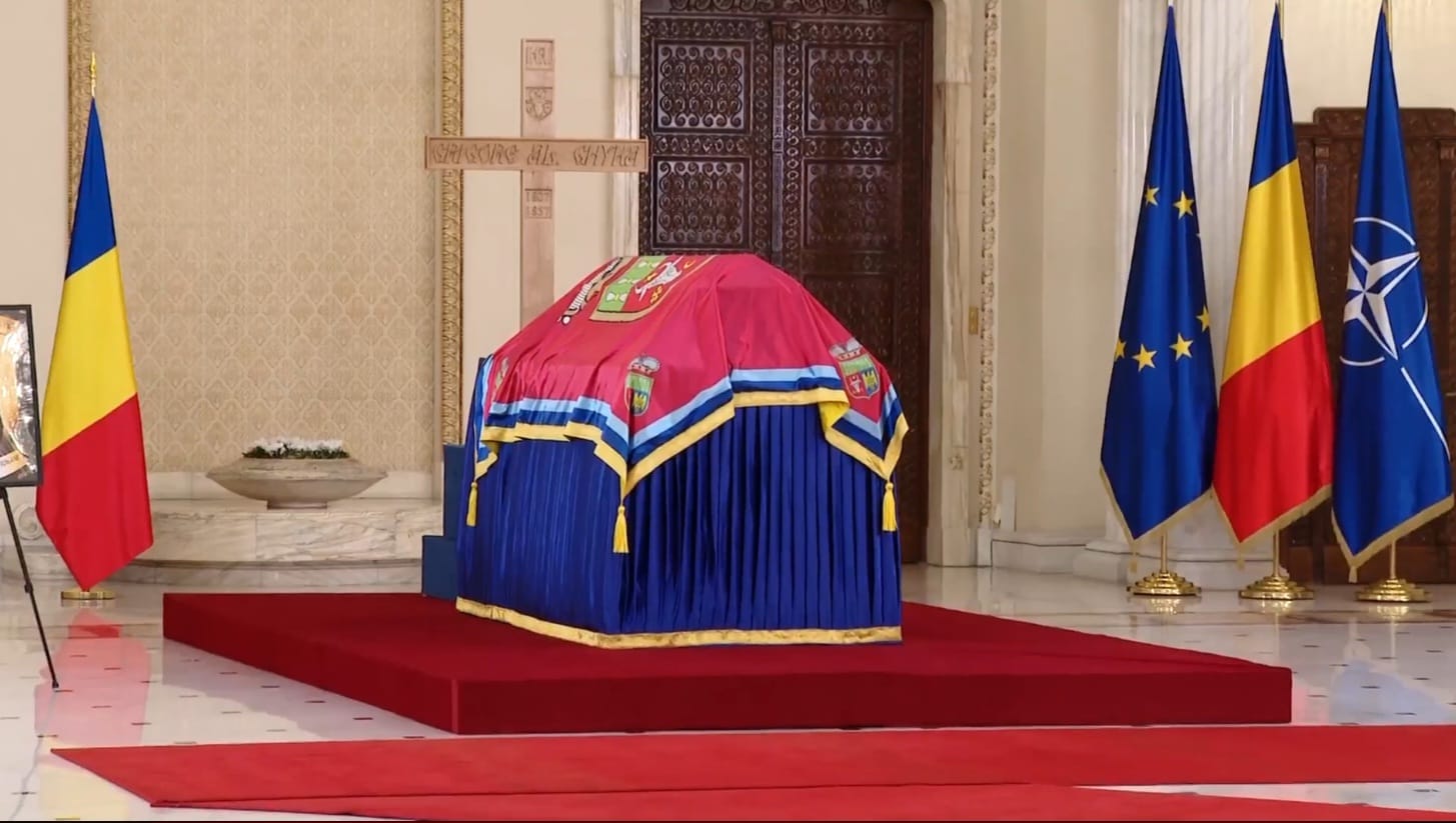 Sicriul cu rămășițele domnitorului Grigore Alexandru Ghyka, depus la Palatul Cotroceni