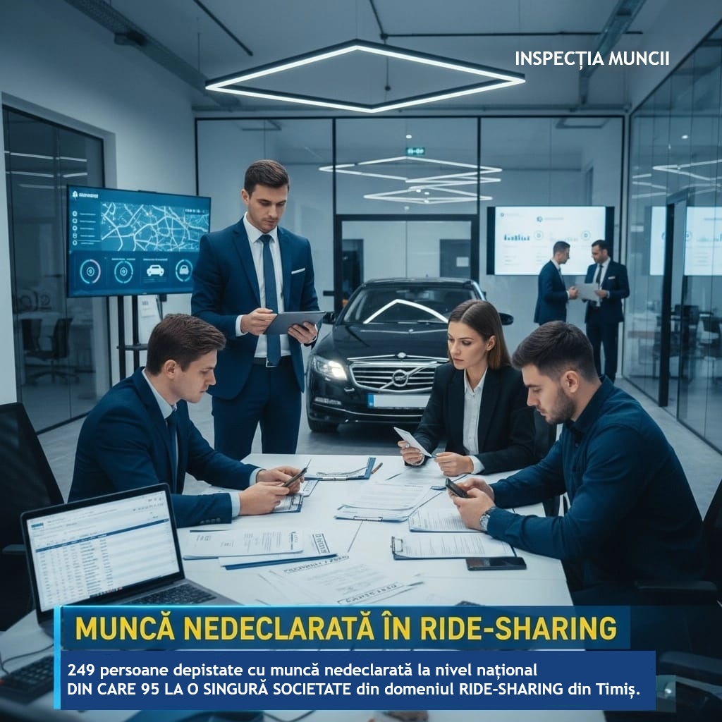 În aria relațiilor de muncă, inspectorii au identificat 249 de persoane care lucrau fără forme legale. Cea mai gravă situație a fost depistată la o societate din județul Timiș, unde 95 de persoane prestau activități de ride sharing fără contract individual de muncă. Pentru acest domeniu au fost aplicate 637 de sancțiuni, dintre care 303 amenzi în valoare de 3.623.400 lei, iar angajatorilor le-au fost impuse 2.315 măsuri de remediere.